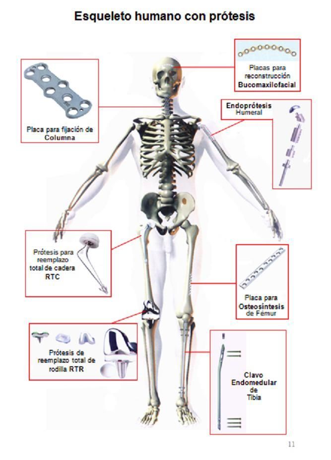 - Prótesis quirúrgicas para cadera, codo, hombro y rodilla.