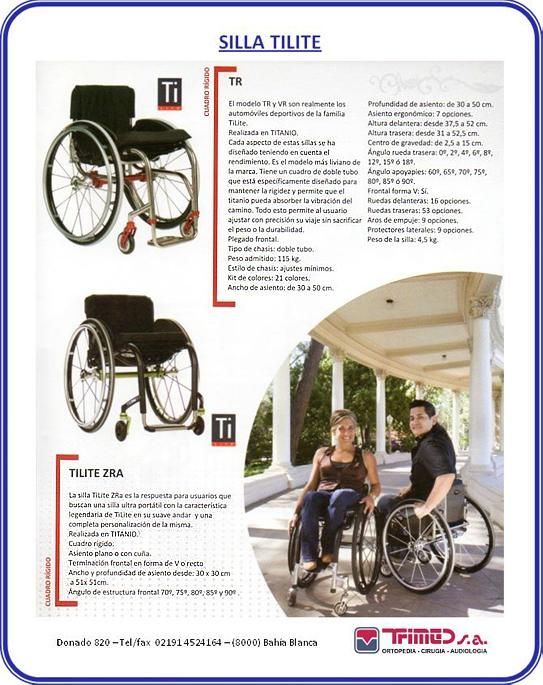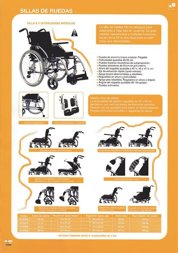 - Sillas de ruedas estándar y especiales a medida.