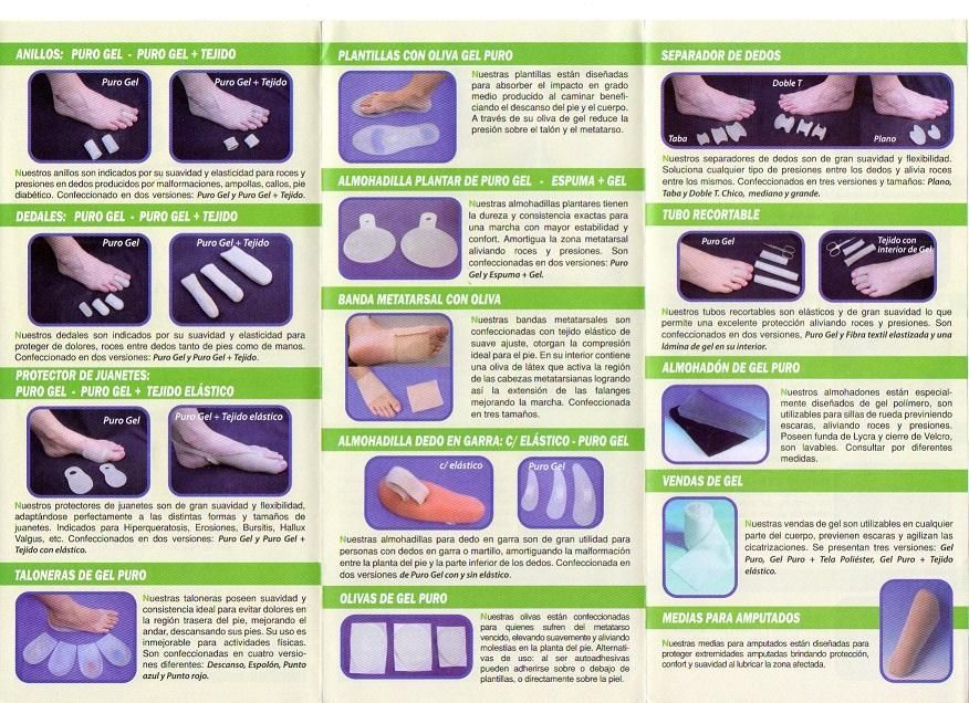 - Productos de gel polimero (separadores de dedo, planchas, taloneras, plantillas, etc.).